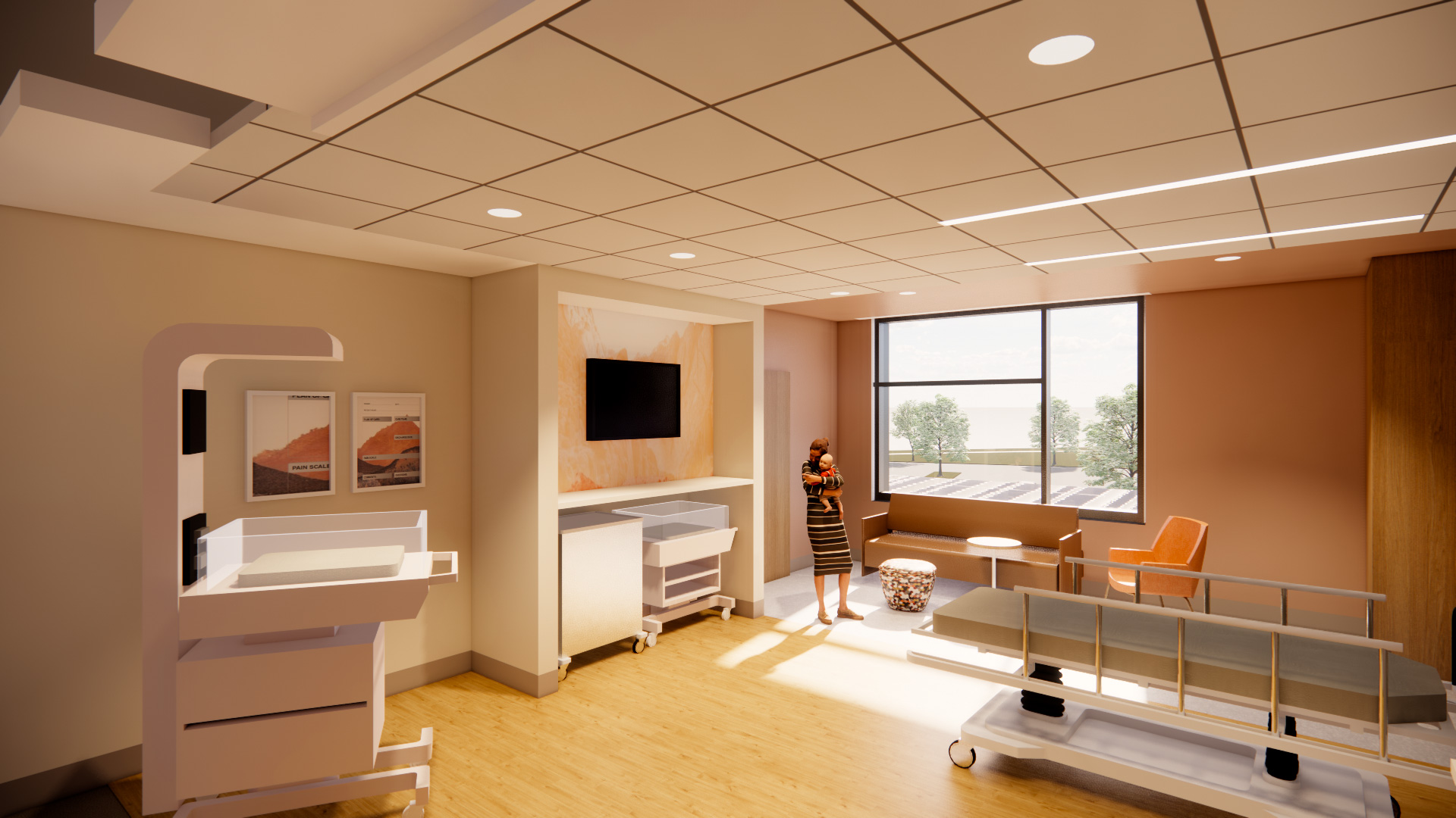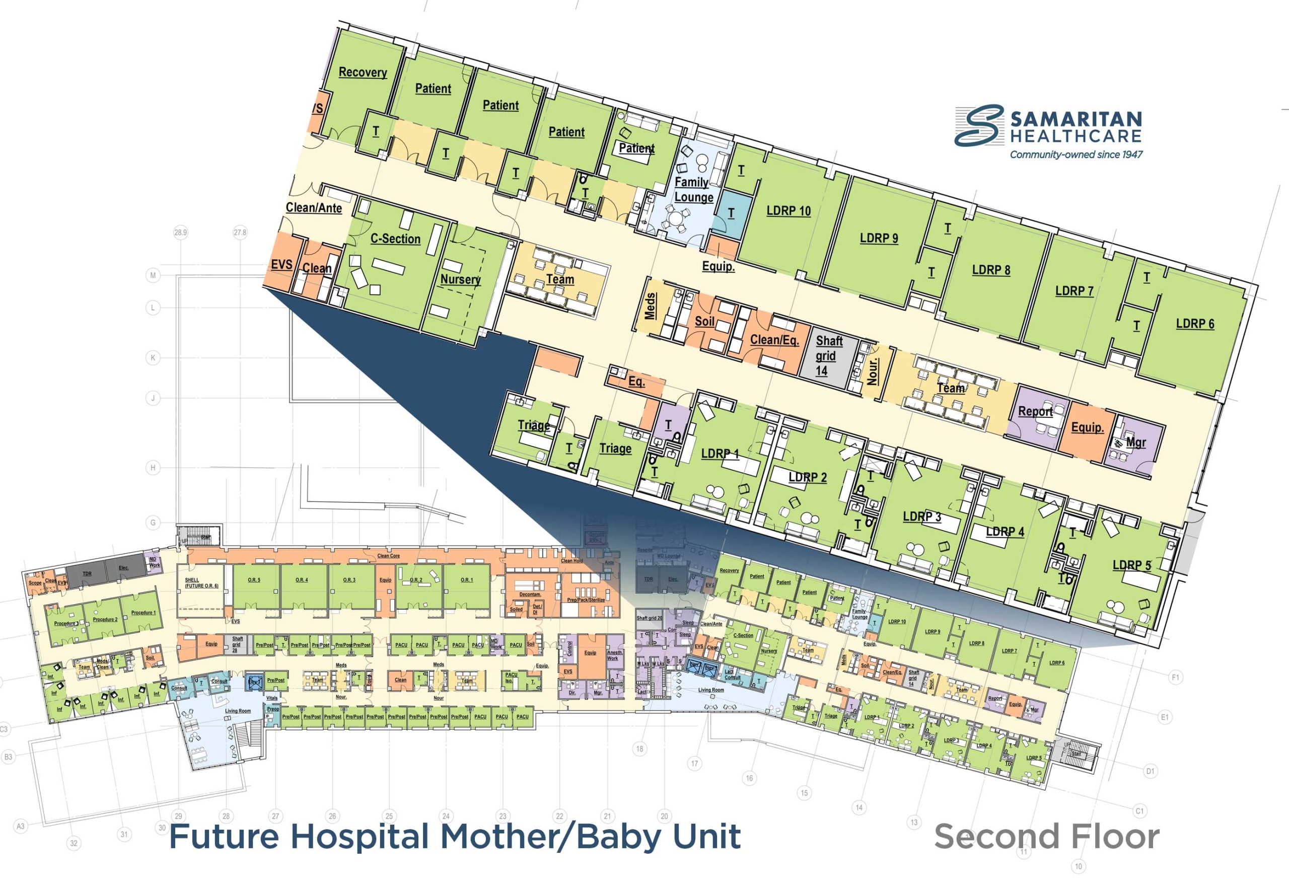 The need to update the Mother and Baby Unit is also being addressed within the design of the future community hospital by constructing a regional LDRP (labor, delivery, recovery, postpartum) with the capability of serving more than 1,000 annual births. Each room is LDRP, which means when a mother checks into a room, her entire birthing experience until she checks out will be within her own private birthing room. There will also be an advanced nursery with a higher level of care for higher-risk births. This allows mothers and babies who need this care to stay close to home and their families in the early weeks of life.